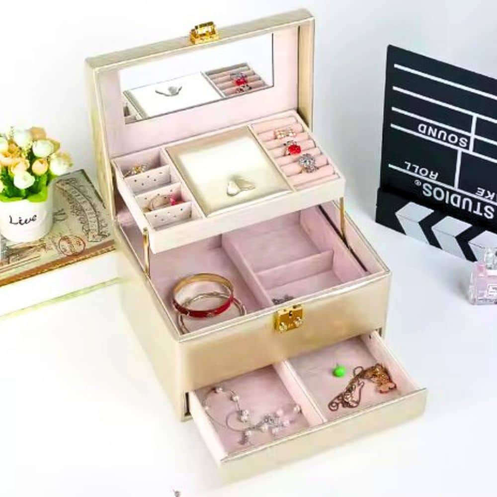 Alhajero Organizador con Cajones Espejo Joyas Anillos Caravanas es ideal para mantener tus joyas organizadas y a la vista.