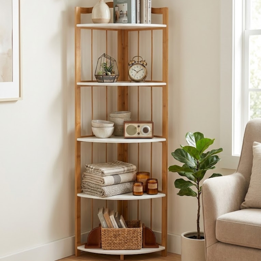 Si tenés falta de espacio y buscás una estantería funcional, liviana y con diseño moderno en Uruguay, esta estantería esquinera de bambú es una excelente elección. Además de optimizar rincones, mejora la organización y aporta un toque decorativo natural que eleva cualquier ambiente.