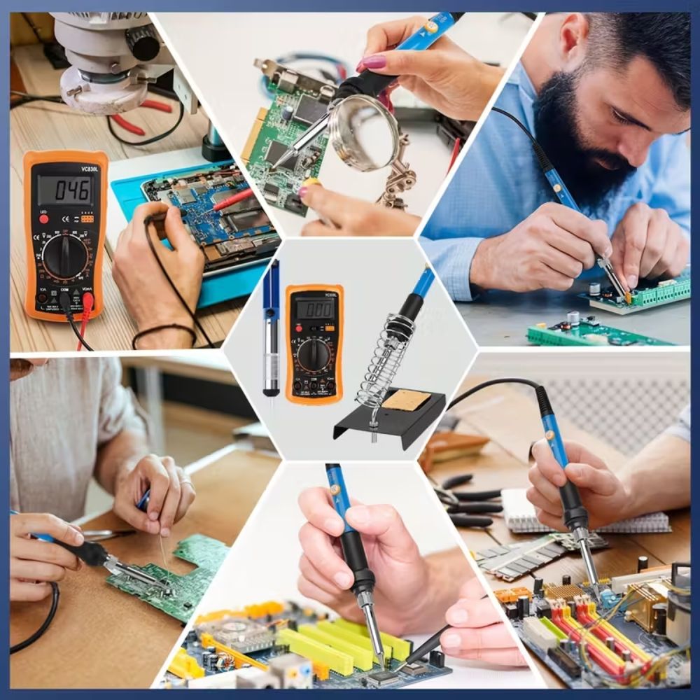 El multímetro digital incluido en el kit permite realizar mediciones eléctricas de manera eficiente, ayudándote a diagnosticar problemas en tus circuitos con facilidad. Además, el alambre para soldar de alta calidad garantiza conexiones sólidas y confiables, mientras que el destornillador multifuncional 8 en 1 te ofrece versatilidad para ajustar y reparar diversos dispositivos.