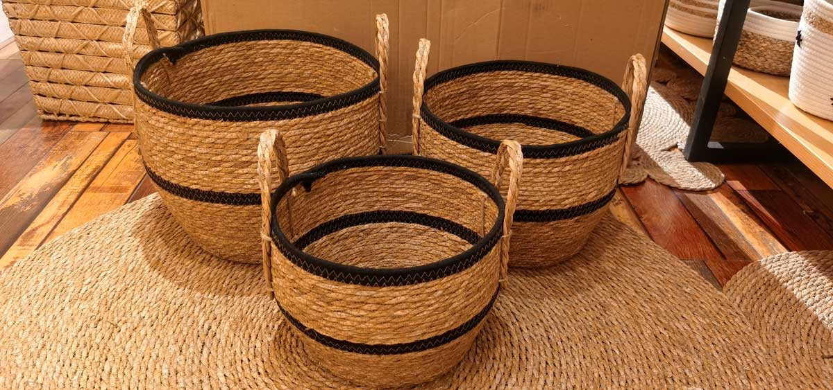 ¿Buscas una solución de almacenamiento que no solo sea funcional, sino que también aporte un toque de elegancia a tu hogar? Te presentamos nuestro «Set de 3 Cestos de Junco Natural con Manijas». Estos cestos, tejidos a mano con junco natural, son una muestra de artesanía excepcional y sostenibilidad. Las manijas incorporadas facilitan el transporte y la organización, y su diseño apilable ahorra espacio cuando no se utilizan. Utiliza estos cestos para ordenar juguetes, ropa, mantas o incluso como maceteros para tus plantas favoritas. Este set de 3 cestos de junco no solo ofrece funcionalidad, sino que también añade belleza a la decoración de tu hogar. Agrega un toque natural y organización a tu vida diaria con estos elegantes cestos de junco.