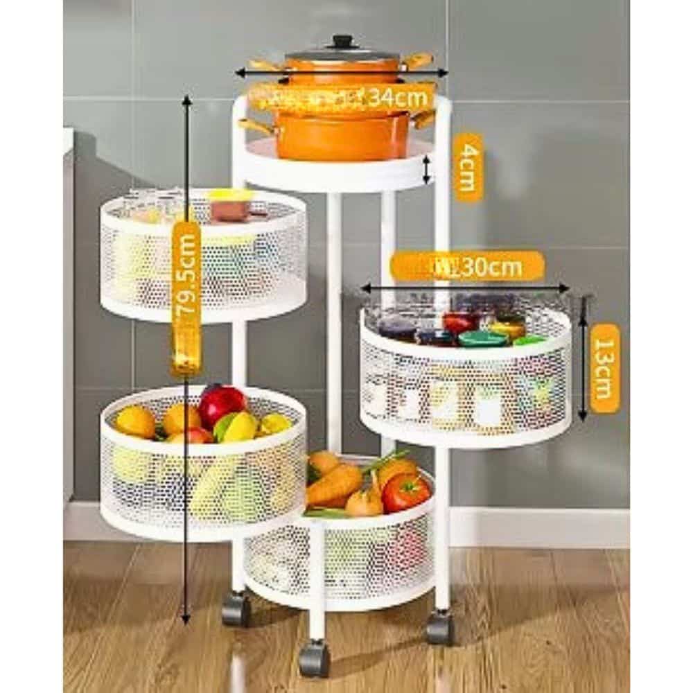 +Diseño Multifuncional: Con cuatro niveles de canastas metálicas espaciosas, este estante es perfecto para almacenar frutas, verduras, utensilios de cocina, productos de limpieza, artículos de baño, y mucho más.