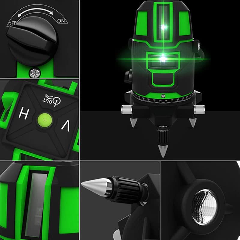 Este láser autonivelante profesional cuenta con 5 líneas para una amplia gama de alineación y medición precisa.