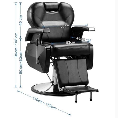-RECLINABLE A 150º, COJÍN Y UNA BASE DE CROMO DE ALTA CALIDAD HACEN QUE LA SILLAD E BARBERO SEA A LA VEZ FIABLE Y FUNCIONAL.